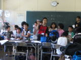 約40分歩いてふれあいの村に到着。すぐに集会室に入りましたが、午後1時までは入村式待ちでしたので、用意してきた参考資料を使って三宅俊明さんの指導で紙飛行機を折って飛ばしました。この部屋で引き続いてお弁当を食べました。