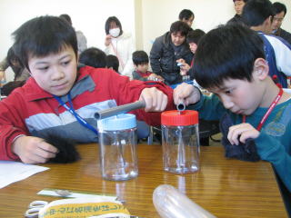 こうして今日の例会を終わりました。最後に質問の時間を作りましたが、乾電池の電気と静電気は何処が違うのか、など良い質問が沢山でました。作った箔検電器と電気コップはみんな持ち帰ってもらいましたので、帰宅したあと、いろいろなものをこすって、実験していることでしょう。電気コップの実験の時には他人を驚かせることの無いように、また心臓に病気のある人には実験をしないようになどの約束をして、解散しました。